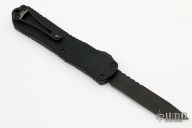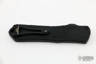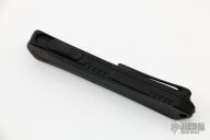This Manticore-E by Heretic Knives features a black tanto blade with notched thumbrest. The handle has a black aluminum frame, black stainless steel hardware and tip down clip, and a carbon fiber thumbslide. Comes with original box and papers. Comes with a Predator bead. Excellent condition.