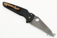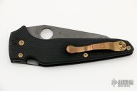 This Yojumbo by Spyderco features a stonewash finished wharncliffe blade with thumbhole. The handle has a black G-10 frame with stainless steel liners, lock is on the spine of handle. 4-way reversible stainless steel clip. Nice detent, lockup and blade seating. Excellent condition.