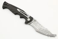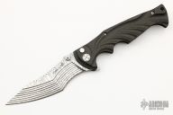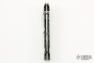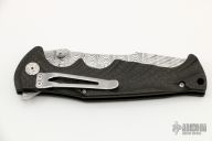 This Tighe Breaker Integral Flipper by Brian Tighe features a Damasteel tanto blade with dual thumb studs and a flipper. The handle has a milled lightning strike carbon fiber frame with deep finger grooves, titanium tip up clip, lanyard hole at the butt. Smooth flipper action. Nice blade seating and lockup. Excellent condition.