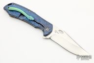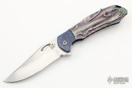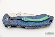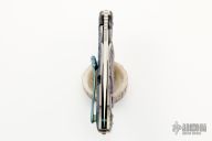 This Phantom XL by Korth Cutlery features a hand rub satin finished blade with notched thumbrest, flipper and thumbhole. The handle has a carved and anodized titanium frame with orange peel finished and anodized titanium backspacer and tip up clip, lanyard hole at the butt. Comes with leather zippered case. Features dual row IKBS. Nice detent, lockup and blade seating. Excellent condition.