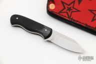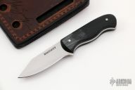 This Angry Ant by Mike Snody features a chisel ground satin finished Magnacut blade with .105" blade stock and .725" blade depth, full tang construction with black canvas micarta scales. Comes with a custom leather sheath. New from maker. Comes with original box and papers.
