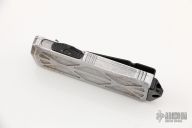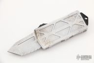 This Microtech Exocet features a distressed white finish tanto blade with full serrations and satin flats. The handle has a distressed white aluminum handles and a black stainless clip that doubles as a money clip dated 07/2021, S/N 198. Comes with original box and papers. Excellent condition.
