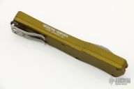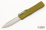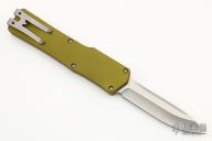 This Cleric OTF by Heretic Knives features a stonewashed drop point blade. The handle has a OD green aluminum frame with a stepped and bead blasted stainless steel thumbslide and bead blasted stainless steel tip down clip. #00400. Has some light scratches, excellent condition otherwise.