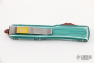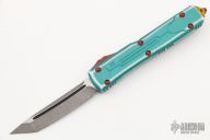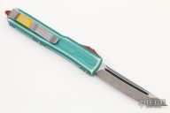 This Star Wars themed Ultratech by Microtech knives features a standard tanto blade with fullers and apocalyptic finish. The handle has a green battle worn aluminum frame with red and yellow hardware. Comes with original box and papers. Dated 09/2019. Excellent condition.