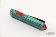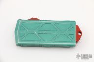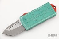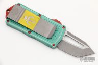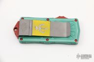 This Microtech Exocet features an apocalyptic finished tanto blade. The handle has a distressed green aluminum handle and a stainless clip that doubles as a money clip dated 01/2021 S/N 1331. Comes with original box and papers. Excellent Condition.