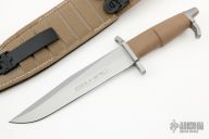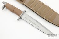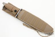 A.M.F. (Advanced Multi Function) is a 20,6 cm blade knife inspired to a legend in the survival cutlery of the 80es. It can be easily disassembled. It comes with cordura sheath fitting the M.O.L.L.E. system. A survival kit (to be bought only on request) can be easily fixed to the cordura sheath. A.M.F. comes in black and in desert version