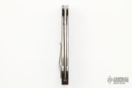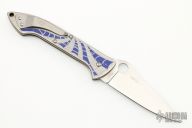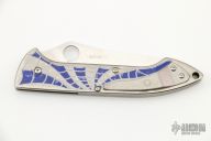 This Mike Draper Design by Spyderco features a satin finished blade with thumbhole. The handle has a milled titanium frame, stainless steel liner and titanium backspacer, tip up titanium clip. Nice detent, lockup and blade seating. Comes with a zippered case and papers. Still has plastic covers on the scales, incase you can see them in the pictures. Excellent condition.