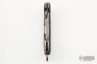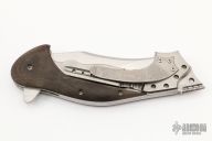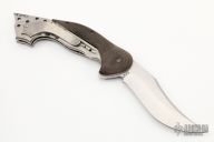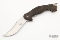 This framelock flipper by Todd Begg features a hand rub satin finish blade with checkered thumbrest and flipper. The handle has g10 scales, cracked ice finish liners, matching tip up clip with jeweled interior. Satin backspacer. Includes IKBS (Ikoma-Korth Bearing System) for smooth and fast flipper opening that requires no wrist action. Nice blade seating, lockup, and detent. Comes with zipper case. Has some scuffs and scratches, some oxidation on the backspacer, otherwise great condition.