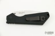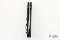 This Pro-Strider PT by Pro-Tech and Strider Knives features a two-tone 154CM blade with a notched thumbrest. The handle has a unique micarta and black aluminum frame with black stainless steel tip up clip, mother-of-pearl push button. Comes with Protech box. Has a few scuffs and scratches, otherwise good condition.