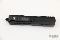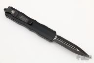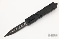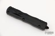 This Dirac OTF automatic by Microtech features a D/E black blade with a standard edges. The handle has a black aluminum with stainless steel tip down clip and hardware. Serial number 10230 and dated 01/2022. The pocket clip shows light signs of wear otherwise the knife is in excellent condition.