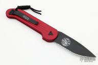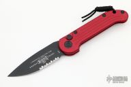 This LUDT auto by Microtech Knives has a black partially serrated blade with a red aluminum frame. Stainless steel clip. Dated 05/2021 and serial number 24024. Comes with original box and papers. Knife is in excellent condition and shows no signs of use/carry.