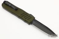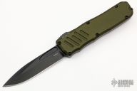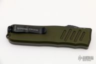 This Recon-035 by Guardian Tactical features a black drop point blade.  The handle has a green aluminum frame with black hardware and a black stainless steel pocket clip.  Light wear is visible on the pocket clip otherwise the knife is in excellent condition.