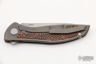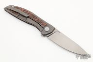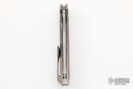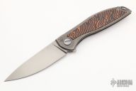 This Neon NL by Shirogorov features tumbled blade with notched thumbrest and flipper. The handle has a tumbled titanium frame with crazy micarta inlays. Comes with box and papers. Rides on MRBS. Excellent condition.