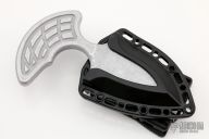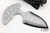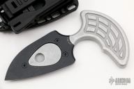 This Sleight push dagger by Heretic Knives features a chisel ground double edged Battleworn Black blade that is attached to a Blizzardworn finished aluminum handle. Overall thickness is .350" and has a blade depth of 1.680". Comes with a molded polymer sheath with TekLok. Comes with original box and papers. Excellent condition.
