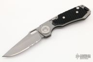 This HAWK D.O.G. is a Grant & Gavin Hawk design that incorporates their Deadbolt Over Grabstep locking mechanism. It's an easy to use knife with smooth action using the thumb hole. The CRKT HAWK DOG has a bead blasted partially serrated clip point style blade and T6 aluminum handles with Zytel scales. Includes the original box and papers.  Excellent Condition.