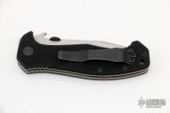 This Mini CQC-15 from Emerson Knives has a stonewashed tanto recurve blade with a thumb disk and notched thumb rest. Handle has black G-10 scales, titanium liners, black barrel spacers, lanyard hole and tip up black stainless steel clip. Comes with original box and papers.  #1847. Light spotting is visible on the blade otherwise the knife is in Excellent condition.