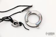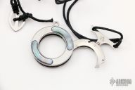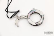 This MK-14 Vicious Circle is a Grant and Gavin Hawk design by Mantis Knives. It is a circular pendant that deploys a curved blade when detached from the lanyard. Satin finish with abalone inlays. Includes original box and paperwork. Excellent condition.