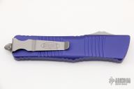 This Combat Troodon by Microtech features a satin finished tanto blade. The handle has a purple aluminum frame with blasted hardware and tip down clip. Comes with original box and papers. Dated 01/2019 and s/n 21644. Excellent condition.