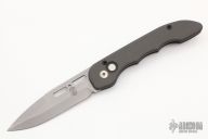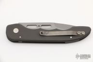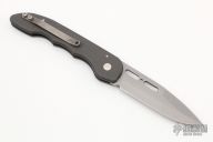 This Gypsy Auto by Rob Dalton has a bead blasted spear point blade. Handle is grey anodized aluminum with titanium tip up clip. Has some scuffs, otherwise excellent condition. #81711