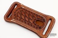 This cross draw sheath by A&M Leather is handcrafted from top quality leather, hand tooled. Has hole in the bottom of the sheath to push the knife out easier. Made primarily for slipjoints. Very well-made. New from maker.