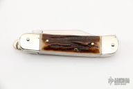 This leverlock auto by Hubertus features a mirror polished blade, nickel silver double bolsters, stag scales, nickel silver liners and brass pins. Opens with a nice snap. Very fast opening. Comes with original box. New condition.