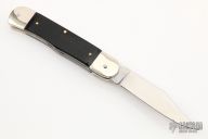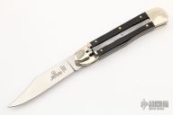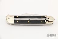 This leverlock auto by Hubertus features a mirror polished blade, nickel silver double bolsters, ebony scales, nickel silver liners and brass pins. Opens with a nice snap. Very fast opening. Comes with original box. New condition.