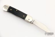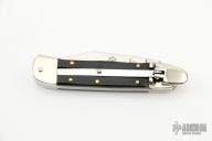 This leverlock auto by Hubertus features a mirror polished blade, nickel silver double bolsters, ebony scales, nickel silver liners and brass pins. Opens with a nice snap. Very fast opening. Comes with original box. New condition.