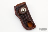 Hand tooled Leather Belt Sheath from A&M Leather. Features a gold and silver concho. New from maker.