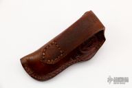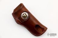Hand tooled Leather Belt Sheath from A&M Leather. Features a gold and silver concho. New from maker.