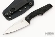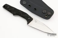 This Muninn EDC by Bawidamann Blades was named after Odin’s Raven. It features stonewash finish on the blade, has notched thumbrest, .101" blade stock and 1.094" blade depth, full tang construction. The handle has IM Bawidamann Chunked Pattern Carbon Fiber scales (proprietary Carbon fiber composite) that have been stippled. Comes ready to carry with the Bawidamann Uberscabbard. Excellent condition.
