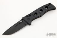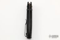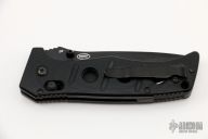 This Siebert designed 275 Adamas Axis Lock has a black coated D2 stainless steel drop point blade with blood grooves and notched thumb rest. Handle is black G10 over black stainless steel liners, tan G10 spacer, reversible tip up black stainless steel clip. Has some light scuffs on the blade, otherwise excellent condition.