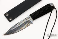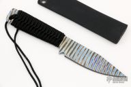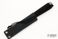 This knife by Mick Strider features a flame anodized titanium chisel ground blade with black cord wrap, .130" blade stock and .950" blade depth, full tang construction. Comes with kydex sheath. Excellent condition.