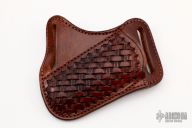 This cross draw sheath by A&M Leather is handcrafted from top quality leather, hand tooled. Made primarily for slipjoints. Very well-made. New from maker.