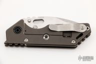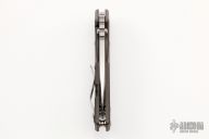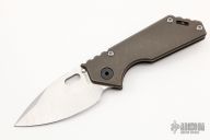 This 3/4 AR by Strider Knives features a stonewashed blade with notched thumbrest and thumbhole. The handle has a tumbled and anodized titanium frame with a stonewashed titanium tip up clip. Nice detent, lockup and blade seating. New condition.