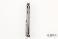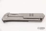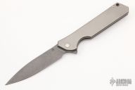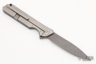 This Rainmaker by Olamic Cutlery features acid washed blade with a notched flipper. The handle has a light blasted titanium frame with matching titanium tip up pocket clip and titanium floating backspacer. Nice detent, blade seating and lock up. Includes original zippered case and COA dated 7-2-21. Excellent condition.