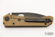 This 187 DPT Drop Point by Medford Knife and Tool features a black PVD blade with notched thumbrest and thumbhole. The handle has a stonewashed and anodized titanium frame and black PVD clip and hardware. Nice blade seating, detent and lockup. Comes with original box, hard case and papers. Excellent condition.