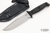 Shane Sibert designed this heavy-duty fixed blade for Benchmade. The Arvensis is a big knife that has a "light hand feel". The nearly 6.5" blade has a pronounced clip point profile and includes a large choil for choking up on. Contoured black G-10 scales are fastened to the full-tang 154CM steel blade with tube pins and straddle the fine line of comfortable grip. The Arvensis includes a Boltaron sheath with an innovative attachment feature.