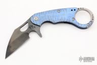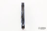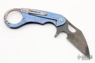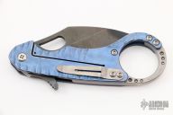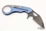This Burung by Medford features a vulcan finished blade with thumbhole and flipper. The handle has a sculpted and anodized titanium frame with a blasted titanium backspacer and a tip up reversible tumbled titanium clip. Nice detent, lockup and blade seating. Comes with original box and papers. Has some light scratches, otherwise excellent condition.