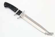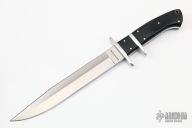 This Big Bear Classic from Cold Steel features a double edged clip point satin finished VG-1 SAN MAI blade, .196" blade stock and 1.185" blade depth, full tang construction. The handle has a stainless steel double guard and sub-hilt, black linen micarta scales and lanyard tube. Comes with a black kydex sheath and original box. Excellent condition.
