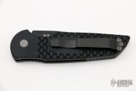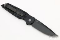This TR-3 X1-M by Pro-Tech Knives features a black spear point blade. The handle has a black aluminum handle with stainless steel backspacer with lanyard hole, tip up blade stainless steel clip. Includes the original box and papers. Excellent condition.