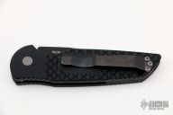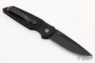 This TR-3 X1-M by Pro-Tech Knives features a black spear point blade. The handle has a black aluminum handle with stainless steel backspacer with lanyard hole, tip up blade stainless steel clip. Includes the original box and papers. Excellent condition.