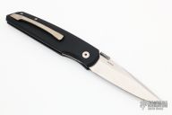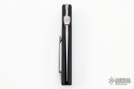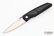 This 8801 Harkins ATAC by Pro-Tech Knives was designed by Jeff Harkins. The auto fire feature is achieved by depressing the lower corner of the first (closest to front of the handle) carbon fiber inlay. Manual opening is equally effective, and with dual thumbstuds can be accomplished with either hand. Closes via the linerlock. Has a black aluminum handle, marble carbon fiber inlays and a satin finished blade. Has an orange peel finished titanium tip up clip with hidden screws.  Comes with original box and papers. Excellent condition
