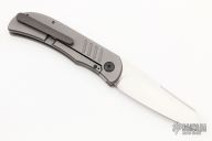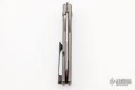 This EXK CFL from Burger Knives features a hand rub satin finished sheepsfoot blade with notched thumbrest and front flipper. The handle is comprised of a bead blasted and milled titanium frame with blackened titanium tip up clip and backspacer. Includes a zippered case and COA dated May 2022. Excellent Condition.