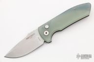 The Protech Knives SBR (Short Bladed Rockeye) is a utilitarian, compact, every-day-carry version of the Les George iconic Rockeye model, retaining the classic design in a smaller package. The SBR has the same American innovations as the Rockeye, featuring modern materials, high tech manufacturing, advanced coil spring mechanism, and quality American production. This version of the SBR has a stonewashed finished S45VN stainless plain edge blade, black anodized aluminum and jade g10 handles and satin hardware. Comes with original box and papers. Excellent condition.