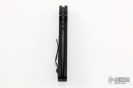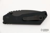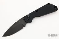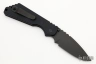 This Pro-Strider SNG by Pro-Tech and Strider Knives features a black blade with notched thumbrest. The handle has a black aluminum frame with black hardware and black stainless steel tip up clip.  There is a tritium lantern inlaid into the push button. Comes with original box and papers. Excellent condition.