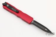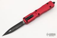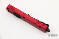 This Dirac OTF automatic by Microtech features a D/E black blade with a standard edges. The handle has a red aluminum with stainless steel tip down clip and hardware. Serial number 5149 and dated 06/2020. Comes with original box and papers. Excellent condition.
