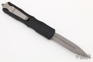 This Dirac Delta OTF automatic by Microtech features a D/E Apocalyptic finish blade with a standard edges. The handle is black aluminum with stainless steel tip down clip. Serial number 2250 and dated 05/2020. Comes with original box and papers. Excellent Condition.