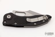 This Stitch Auto by Microtech Knives features a stonewash finished blade and false top edge, notched thumb and finger rests. The handle has a black anodized and milled aluminum handle with a bead blasted titanium backspacer and a bead blasted stainless steel clip, tip up carry, lanyard hole at the butt. Comes with original box and papers. S/N of 4474 and dated 06/2022. Excellent Condition.