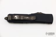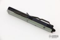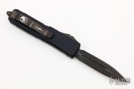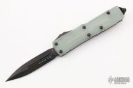 This UTX-85 OTF automatic by Microtech knives features a D/E black double-edged blade with a standard edge.  The handle features a Jade G10 top with a black aluminum bottom with black hardware, tip down carry. Glass breaker. S/N 048. Dated 07/2020. Comes with incorrect box and papers. Excellent condition.