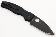 This Shaman Pln by Spyderco features a stonewashed spear point blade with notched thumb and finger rests, thumbhole. The handle has black G-10 scales, inlaid stainless steel liners and a stonewashed stainless steel backspacer, 4-way reversible stainless steel clip, lanyard hole at the butt. Excellent condition. Comes with original box and papers.